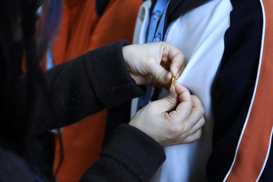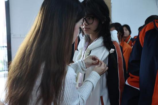 隨后,團委老師逐一為新團員佩戴團徽,全體新團員面向團旗莊嚴宣誓。這枚小小的團徽,不僅是共青團員的身份標識,更承載著組織的信任與時代的重托,象征著新團員們接過青春接力棒、續(xù)寫奮進篇章的堅定決心。