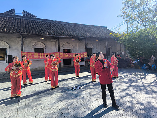 11月19日,天荒坪鎮(zhèn)馬吉村粟裕紀念館門前操場化作紅色文化舞臺。安吉社區(qū)教育學院天荒坪分院(天荒坪成校)老年歌詠班全體學員自發(fā)組織學期成果展演,以“紅歌+舞蹈”形式獻上20個節(jié)目。天荒坪成校校長汪華忠、馬吉村村委領(lǐng)導全程觀摩,村婦女主任陳凌飛擔任主持,吸引百余名村民駐足。
