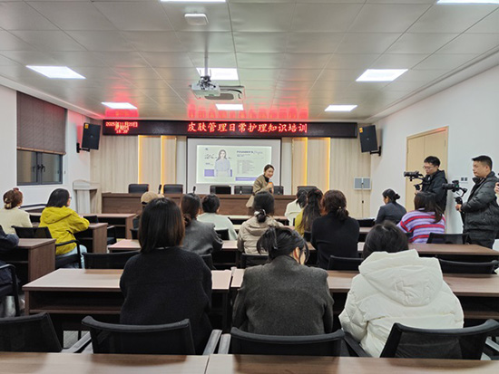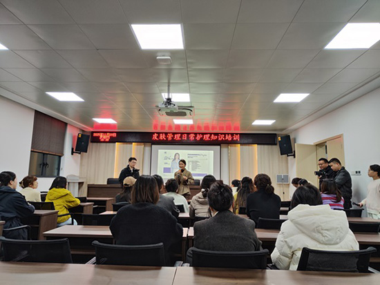 培訓中,管愿愿老師結合自身專業知識與實踐經驗,從皮膚類型科學判斷、不同膚質日常護理要點、常見護膚誤區解析等方面展開講解。針對秋冬季節皮膚干燥、敏感等常見問題,她詳細演示了基礎清潔、保濕補水、防曬等核心護理步驟,并分享了挑選護膚品的實用技巧。