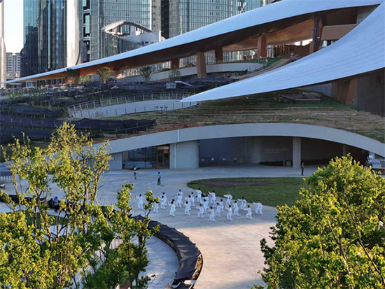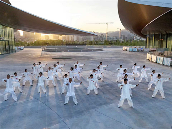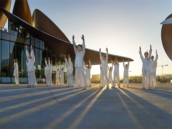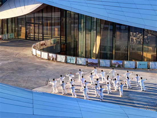抬手、轉身、屈膝,每一招式都舒展從容,既有太極的溫潤內斂,又與周邊充滿科技感的建筑形成奇妙呼應,路過的市民忍不住放慢腳步,拿出手機記錄下這幅“傳統(tǒng)與現(xiàn)代共生”的畫面。