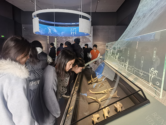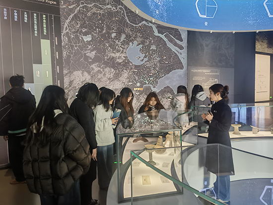 首站是“臨平遺址群展廳”。這里通過(guò)豐富的出土文物與詳實(shí)的圖文資料,全景式展現(xiàn)了臨平從新石器時(shí)代至夏商周時(shí)期人類活動(dòng)軌跡與文明演進(jìn)歷程,讓同學(xué)們對(duì)腳下這片土地的深厚積淀有了宏觀而深刻的認(rèn)識(shí)。