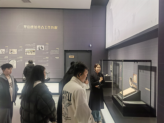 隨后,隊(duì)伍移步至“茅山遺址展廳”。該展廳集中展示了與良渚文化密切相關(guān)的珍貴遺存。面對(duì)一件件古樸精美的陶器、玉器,同學(xué)們駐足細(xì)觀,認(rèn)真聆聽(tīng)先民們的生產(chǎn)方式、社會(huì)組織與精神信仰,仿佛跨越千年,與古老文明展開(kāi)了一場(chǎng)無(wú)聲卻深情的交流。