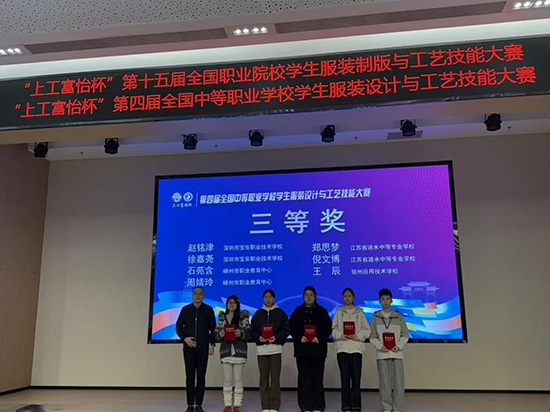 在同期舉辦的第四屆“上工富怡杯”全國中等職業學校學生服裝設計與工藝技能大賽中,學校學子同樣表現不俗。周婧玲、張一嵐、王鑫璐、石苑秀四位同學在激烈的競爭中穩定發揮,齊創佳績,共同斬獲全國三等獎!