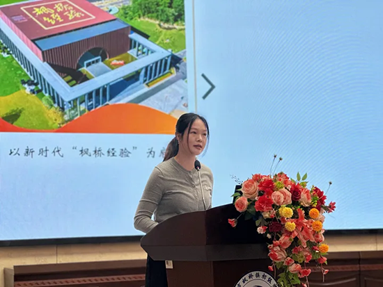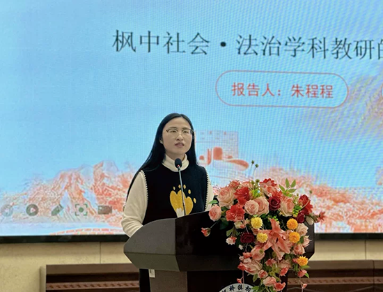 朱程程以《扎根“楓橋經驗”,深耕鄉土思政——楓中社會·法治學科教研的路徑探索與實踐成果》為題作報告。她以“楓橋經驗”為精神內核與資源源頭,遵循“理論引導—實踐探索—文本凝練—成果輸出”的閉環路徑,系統推動鄉土資源向立德樹人鮮活教材轉化。在此過程中,學生實現從“傾聽者”到“擔當踐行者”的成長,教師完成從“耕耘者”到“思想研究者”的蛻變,成功打通鄉土資源到育人成果的轉化通道。