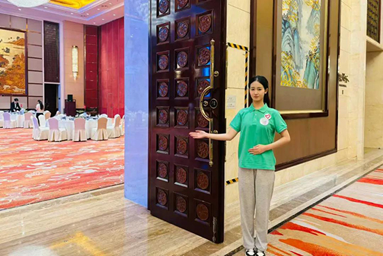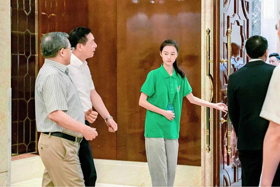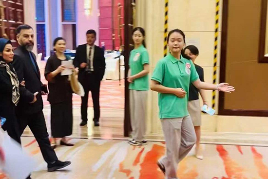 5月10日,28名志愿者至龍之夢北京廳為未來大會提供志愿服務。