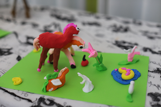 活動(dòng)邀請了世茂幼兒園退休教師、長期投身公益的柯麗君老師,柯老師化身“小馬藝術(shù)家”,將小朋友們帶入一個(gè)奇思妙想的夢幻世界。她一邊展示黏土技巧,一邊講述小馬的形象特征和小場景的布局技巧。孩子們聽得認(rèn)真、學(xué)得投入,有的孩子給小馬安上了大波浪鬃毛,有的為小馬貼上閃亮的馬蹄,還有的小組腦洞大開,給小馬放在彩虹橋上……每一匹小馬都帶著獨(dú)一無二的個(gè)性與想象力,活動(dòng)現(xiàn)場笑聲不斷、創(chuàng)意四溢。