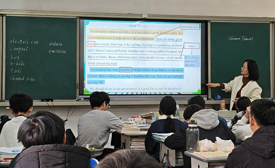 李美玲老師的《Green Travel》寫作課緊扣時(shí)代脈搏,以綠色出行為主題,通過(guò)范文引路,沿著“總述點(diǎn)題—方式鋪陳—優(yōu)點(diǎn)闡釋—號(hào)召收尾”的清晰脈絡(luò),培養(yǎng)學(xué)生結(jié)構(gòu)化表達(dá)能力。課堂將生態(tài)理念自然融入教學(xué),學(xué)生在提升英語(yǔ)寫作水平的同時(shí),增強(qiáng)了環(huán)保意識(shí)和社會(huì)責(zé)任感。
