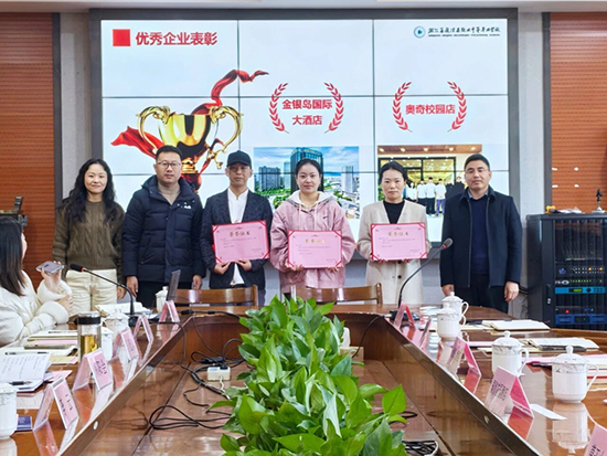會議對金銀島國際大酒店等3家優(yōu)秀合作企業(yè)進行表彰。國貿(mào)花園經(jīng)理駱楊雪、金銀島陸主管先后分享合作經(jīng)驗,均感謝學(xué)校搭建的優(yōu)質(zhì)平臺,表示將持續(xù)深化與校方的協(xié)作。