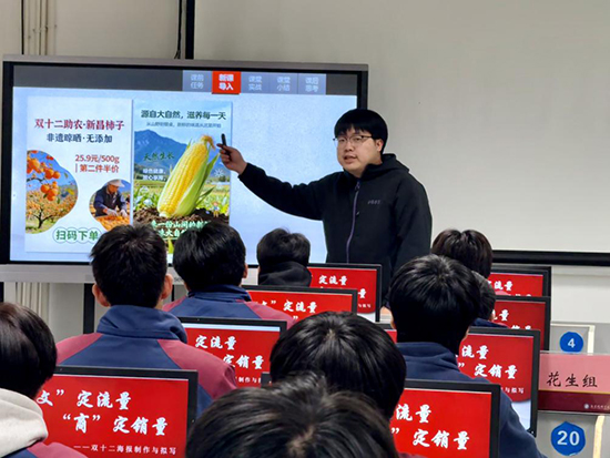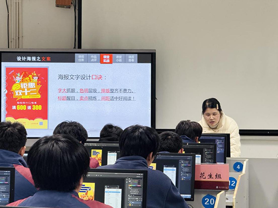 活動伊始,第一節(jié)跨界融合公開課《“文”定流量,“商”定銷量——雙十二海報的制作與擬寫》驚艷亮相。課程以“家鄉(xiāng)助農(nóng)”為核心主題,創(chuàng)新性地將電商營銷思維與平面設(shè)計技能融為一體,讓學(xué)生在實踐中感受跨界知識的應(yīng)用價值。