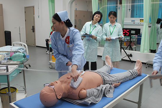 第一賽道要求2名選手協(xié)作完成呼吸心跳驟停患者救護(hù),含雙人心肺復(fù)蘇與靜脈輸液,15分鐘內(nèi)完成,占總成績(jī)50%;第二賽道由組內(nèi)抽簽1人完成老年患者跌倒照護(hù),涉及右踝關(guān)節(jié)扭傷包扎與輪椅運(yùn)送,同15分鐘完成,占40%。兩賽道均配標(biāo)準(zhǔn)化病人還原真實(shí)場(chǎng)景,評(píng)委以專(zhuān)業(yè)公正態(tài)度評(píng)分,保障結(jié)果可信。