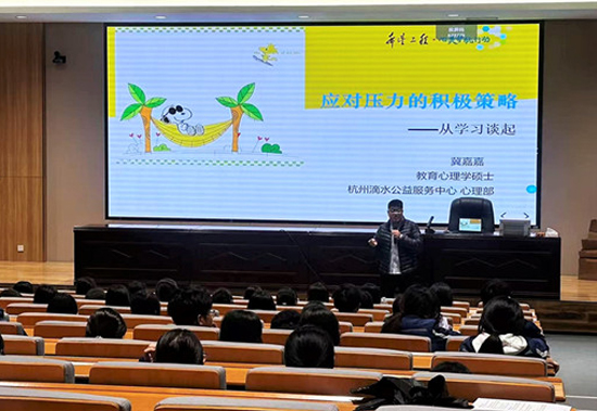12月10日,玉環(huán)市中等職業(yè)技術(shù)學(xué)校迎來“浙江希望工程·心靈護(hù)航行動(dòng)”玉環(huán)站的心理專題活動(dòng),活動(dòng)特邀杭州滴水公益服務(wù)中心心理部副部長、教育心理學(xué)碩士冀嘉嘉老師,為同學(xué)們帶來一場以“應(yīng)對壓力的積極策略”為主題的心理健康講座。講座旨在幫助學(xué)生正確認(rèn)識(shí)壓力、掌握應(yīng)對壓力的積極策略,以更加主動(dòng)和積極的姿態(tài)面對學(xué)習(xí)與生活。