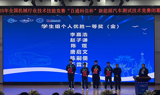 近日,2025年全國機械行業技術技能競賽——“百通科信杯”新能源汽車測試技術競賽決賽在云南昆明圓滿落幕。在上虞區職業教育中心任城龍老師的帶領下,參賽師生發揮出色,以全國排名第二的優異成績榮獲團體優勝獎,并斬獲多項個人獎項。其中,任城龍老師榮獲“金牌導師”稱號;潘煥老師榮獲職工組一等獎;24汽修大專班陳嗣儒同學(班主任李鵬)榮獲學生組一等獎,同時被授予全國機械工業“操作技術能手”稱號;24汽修大專班李博旭同學(班主任李鵬)與25汽修大專班張明浩同學(班主任車艷紅)均榮獲學生組二等獎。