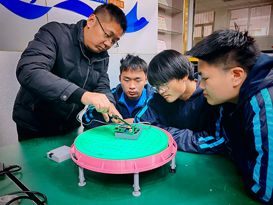 在“創新項目—小發明”類別中,學生表現尤為亮眼:由王宇軒、莫子逸、包天成同學設計,沈華敏、魏濤、戚加敏老師指導的《基于“氣動懸浮”技術的傳輸裝置》;由尹麗杰、趙鈺欽、劉程文琪同學完成,許達垚、鄒偉康老師指導的《新能源汽車底盤故障檢測與EPB集成優化方案》雙雙榮獲一等獎,體現了學校在精密工程與新能源汽車技術教學方面的扎實成效。此外,學校還在智能監測、裝備優化、安全防護等實用領域收獲二、三等獎,展現出學生跨學科知識整合與解決實際問題的創新能力。